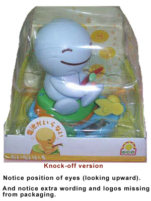 | Be aware, there are knock-off versions that are not made by Tomy. Out of the box, it's almost impossible to tell the knock-offs from the real thing--except for the "Fishing" one, because of the eyes. With the others, you just have to look carefully at the packaging. Authentic Tomy Hidamari will have the Tomy name and "Nohohon Zoku" logo on them. See photos below.... |